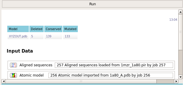 Molecular replacement results are generally improved if the search model is pruned to remove side chains which are not conserved between the search model and the target structure. This task takes an alignment between target and model sequences and modifies the model pdb file by renaming and pruning non-conserved residues. The names of the retained atoms will be changed if necessary to match the target. Conserved residues are left unchanged.