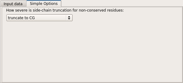 The level of truncation may also be selected. Currently, three modes are supported. The default, "truncate to CG", is the mixed model of Schwarzenbacher et al. in which non-conserved residues are truncated to the gamma atom, while conserved residues are preserved unchanged. The "truncate to CB" mode is similar, but non-conserved residues are truncated to the beta atom. The "tuncate to last common atom" mode retains the maximal number of atoms common to the target and model residues.