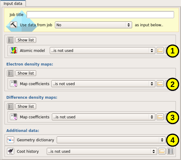 A selection of models, maps, difference maps, dictionary and saved state may be provided to Coot.