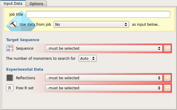 The input to the program should be the sequence of the target, the experimental reflection details (F, SIGF) and the Free R set (1)