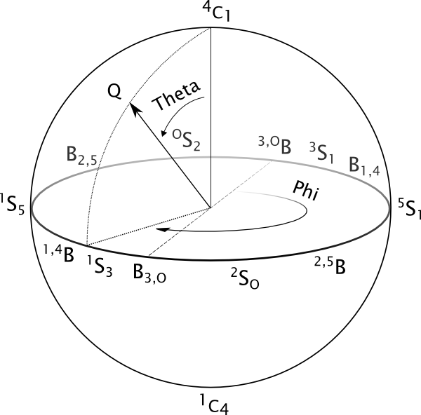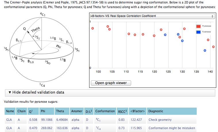 It is possible to analyse a single sugar (supported or not) by typing its three-letter code in (2). The sugar model must follow the standard naming scheme, with C1-C5 plus O5 in the ring (C2-C6 plus O6 for ketoses).