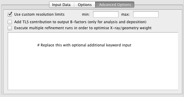 Use custom resolution limits -- By default, all data in the input reflection file will be used during refinement. This option allows the data to be truncated using high and/or low resolution limits.