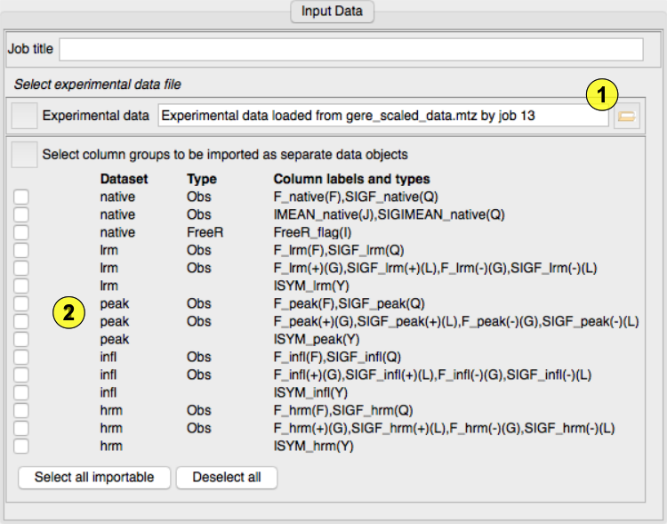 The column data in the file is analysed and the new style experimental data objects are listed. (2) Beware some redundant data in the old-style files does not correspond to any experimental data type (e.g. ISYM columns). Check the boxes to select the experimental data objects you want to import to CCP4i2.