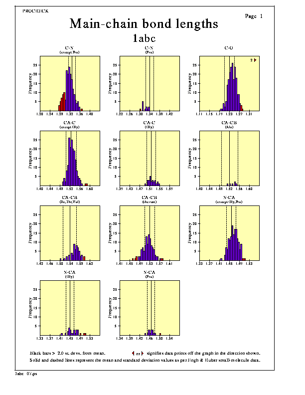 Highlighted bars correspond to values more than 2.0 standard deviations from the mean, though the value of 2.0 can be changed by editing the procheck.prm file.